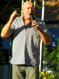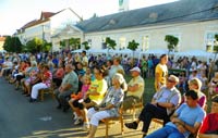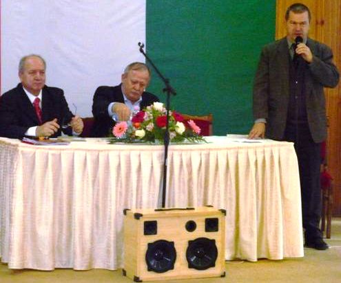 Wenczel Árpád ÖFE elnök köszöntötték a Művelődési Központtal szemben felállított nagy színpadról a nézők seregét,