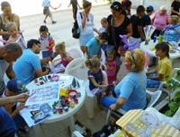 is a Pöttömke és Hétszínvirág Óvodák apróságait, miközben a Könyvtár udvarán már nagyban folytak a kézműves