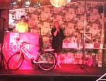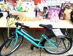 zöld színű Csepel kerékpár volt, amit Bocsi Jánostól vett át a boldog nyertes.
