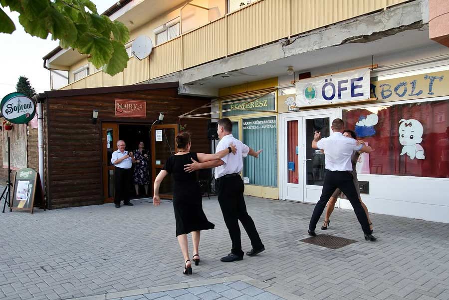 A MÁRKA Presszó előtti téren 17:30 órától a békét jelképező galambröptetést követően Wenczel Árpád ÖFE elnök köszöntötte a jelenlévők népes táborát, akiket egy 50-es hölgyek osztálytalálkozója is színesített. A műsorvezető az idén is Szabóné Hosztafi Amanda volt. Ezt követően 1 órás tánc blokkban lépett fel a dr. Török József vezette Eger Táncklub SE, a Dodek Szilvia vezényletével táncoló DODI TRIBAL SE és a Pettyes Tánccsoport.